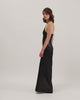 Lightweight nappa leather dress shaped into a maxi with sculptural details. Spaghetti straps cross at the back; selective beading and a front slit introduce measured drama. Fully lined in stretch silk crepe-de-chine, it renders leather in evening proportions.