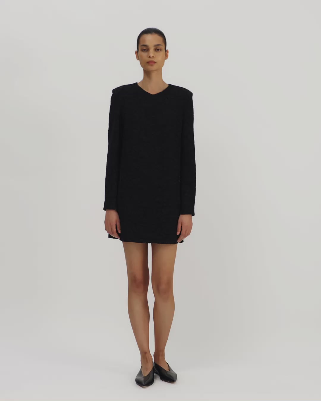 Crafted in Italy from heavy cotton lace, fully lined in silk georgette for effortless fluidity. The Ellie presents a structured lace surface with a concealed centre-back zip and a clean neckline. A romantic interpretation of a classic silhouette, reworking classic lace towards modern, textural tailoring.