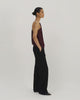 Made from pure-silk georgette in deep plum, gathered with delicate ruching at the front and back. Spaghetti straps cross and gather through a tunneled back for refined tension and sculpted drape. The semi-sheer construction balances evening allure with considered tailoring.